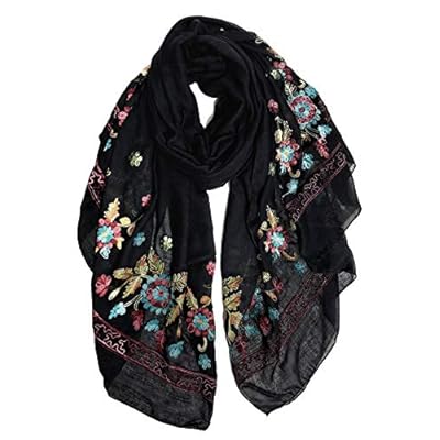 DAMILY Foulard Femme Imprimé Brodé Floral Echarpe Légère à Fleurs Etole Châle en Coton