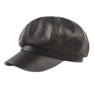Newsboy Hat Newsboy Cap Women Genuine Leather Baker Boy Hat Ladies Beret Black Flat Cap Unisex Suitable for Outdoor…