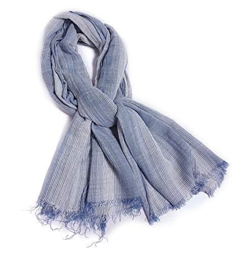 DAMILY Hommes Mode Foulard Echarpe de Plissée Rayée Confortable Coton Lin Hiver Étoles Châle